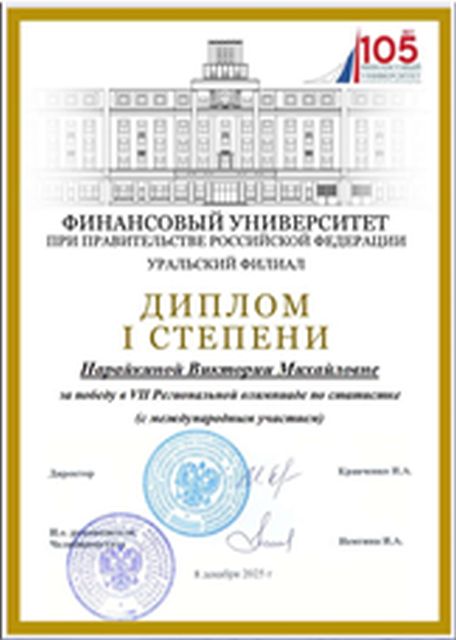Подведены итоги VII Региональной Олимпиады по статистике (с международным участием), которая состоялась 8 декабря 2025г. в on-line формате на базе Уральского филиала Финансового университета при